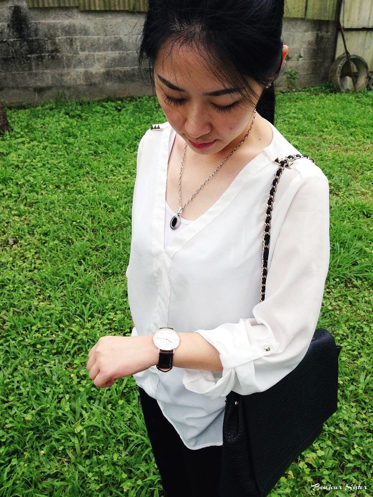 所以即使是白襯衫這樣的簡單,就要用配件包包或是手錶來提昇整個人的質感。