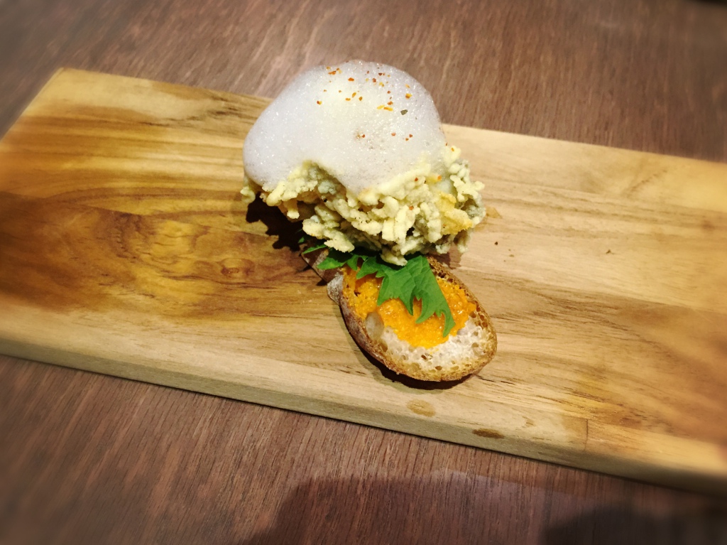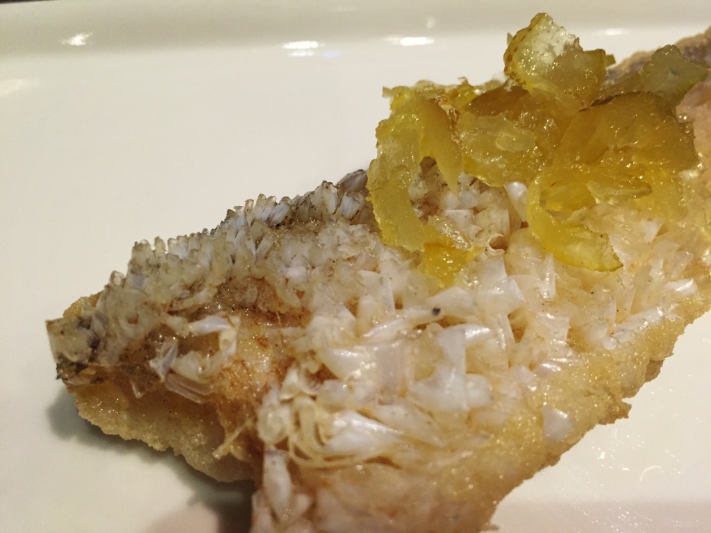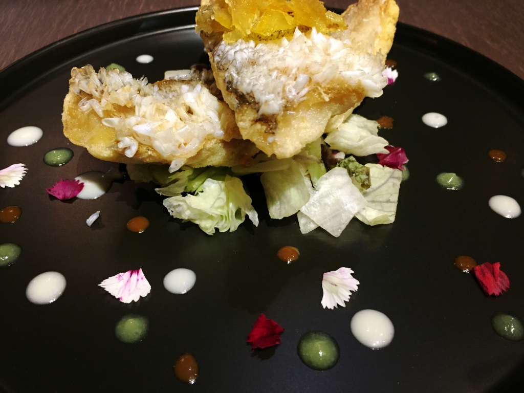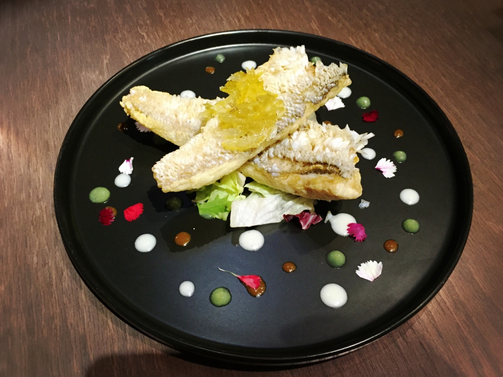 嫩嫩的魚搭配炸得酥脆的魚鱗口感好特別,其實沒有過多的調味,上面放的是柚子醬,吃的是一種清爽自然的甜味。