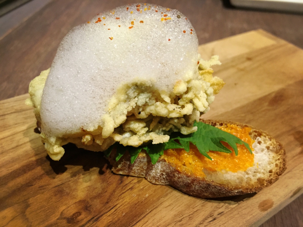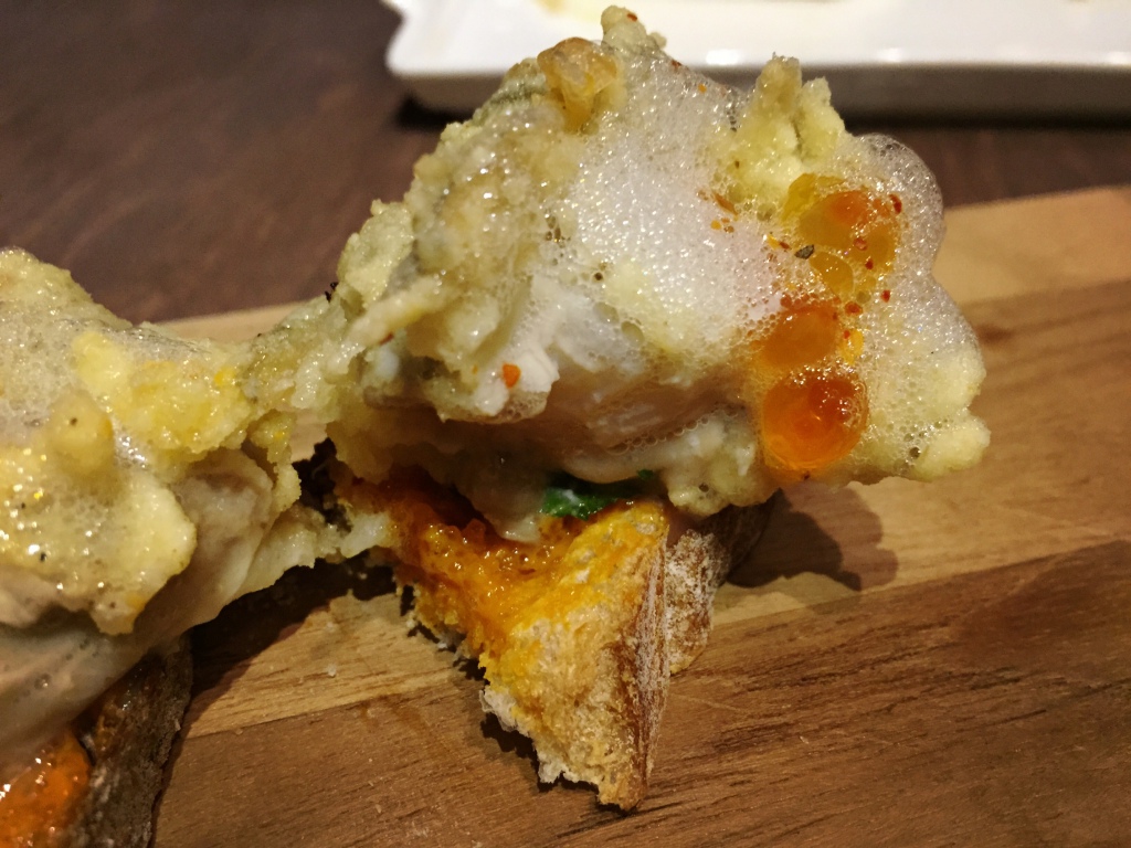 炸得酥脆的生蠔一咬下就是鮮美的滋味,麵包上還塗上了明太子醬,雖然小小一份,但還真的是口齒留香啊!