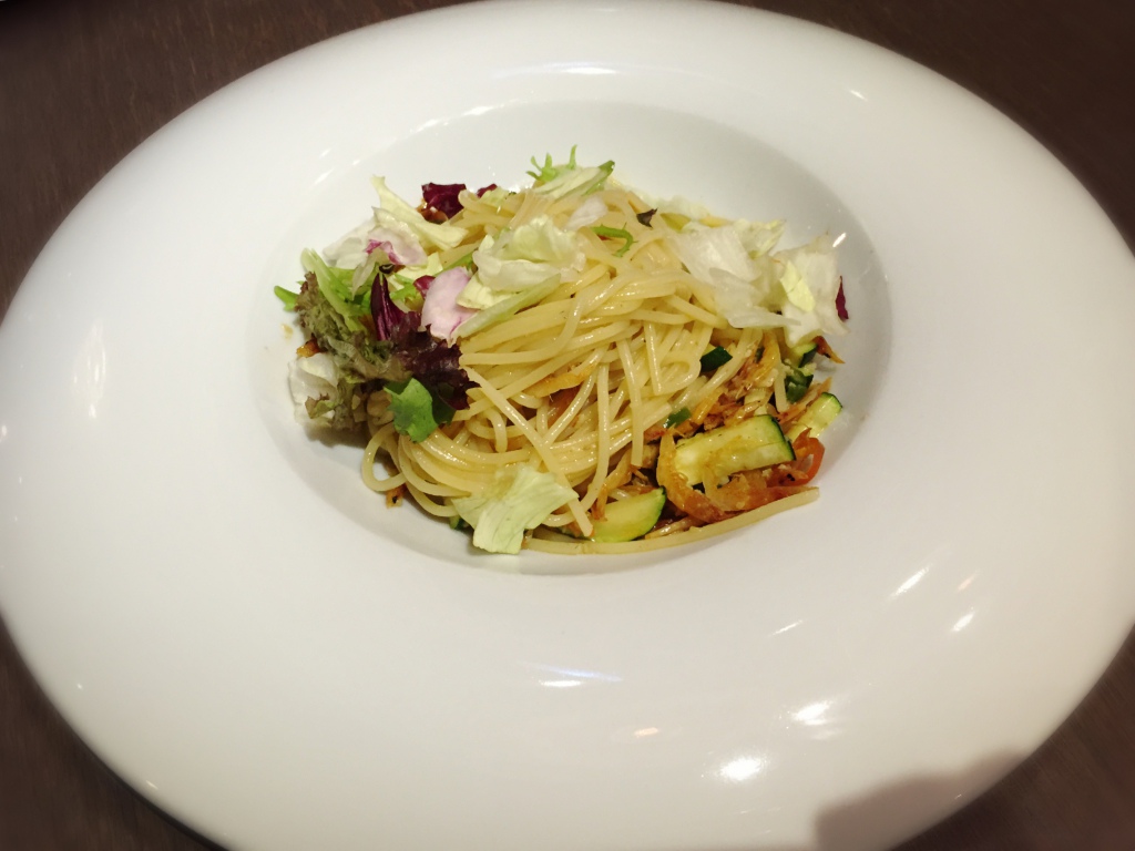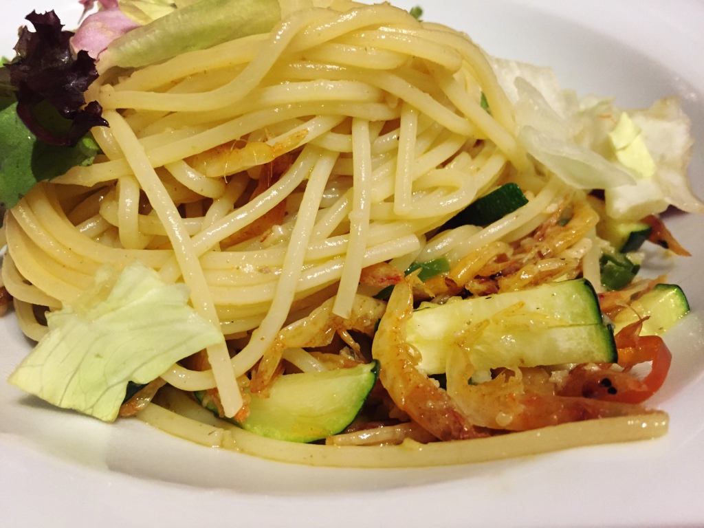 辣炒櫻花蝦細圓麵300元,總覺得加了櫻花蝦好像有點台式風味,清炒的麵調味不會很重,就用櫻花蝦的鮮味來提味。
