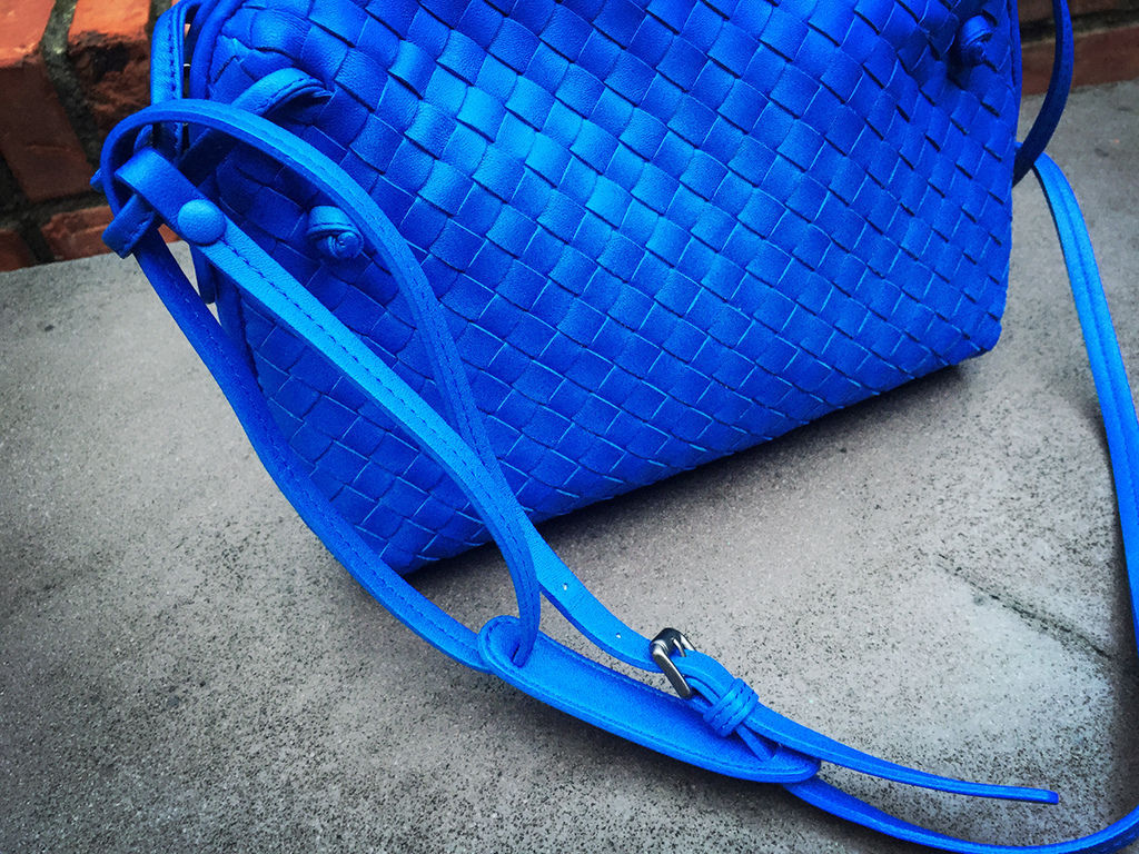 小羊皮材質柔軟有質感,觸感也很好,飽和的藍色可以讓小包成為造型一亮的配件。