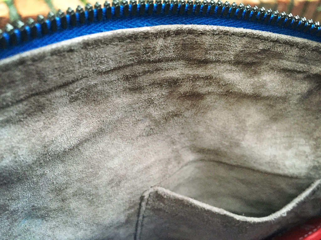 小歸小,裡面還有拉鍊內袋,和一個小口袋,內裡是麂皮的材質,摸起來很舒服,看起來還蠻高級的。