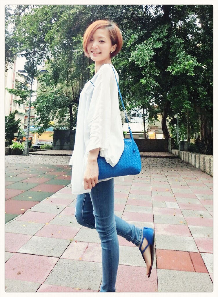 最近當然是背著小藍包來玩穿搭囉!夏天就喜歡藍白配,視覺清爽,又很亮眼。