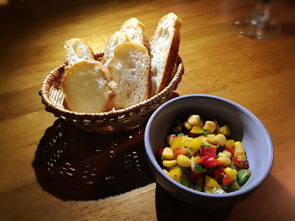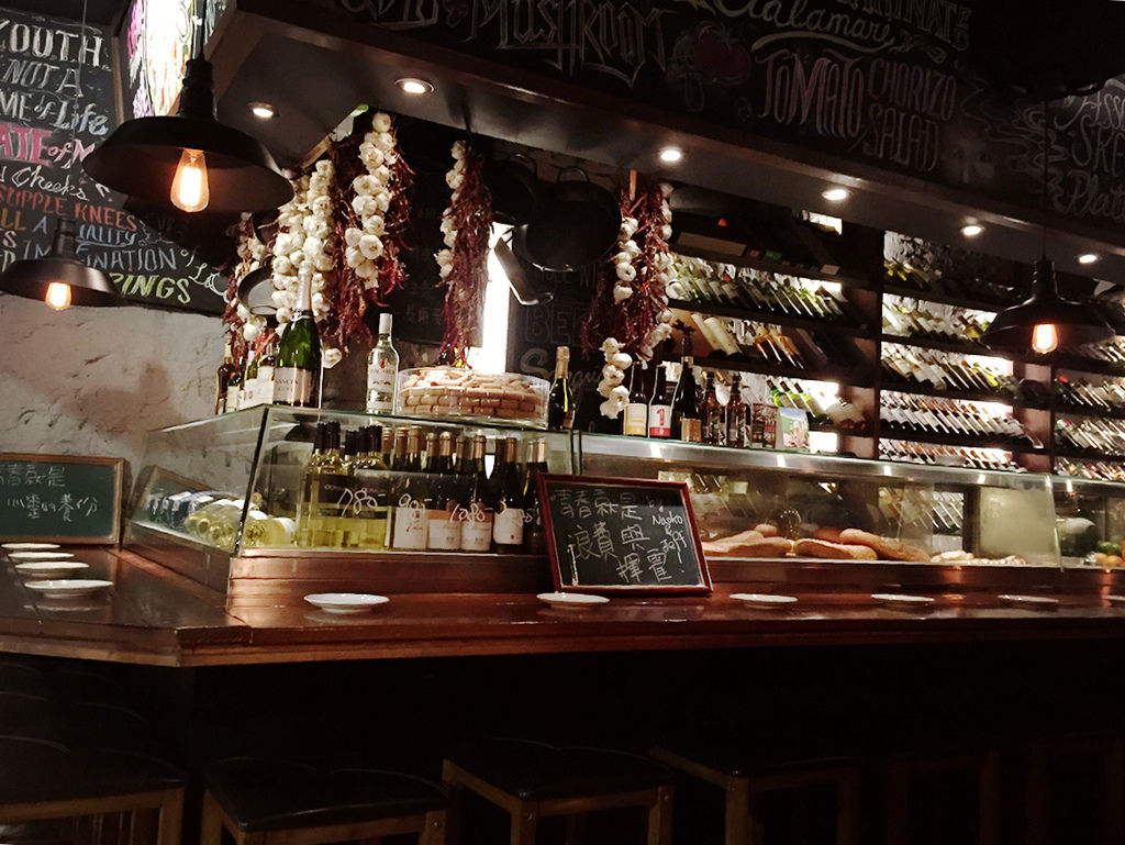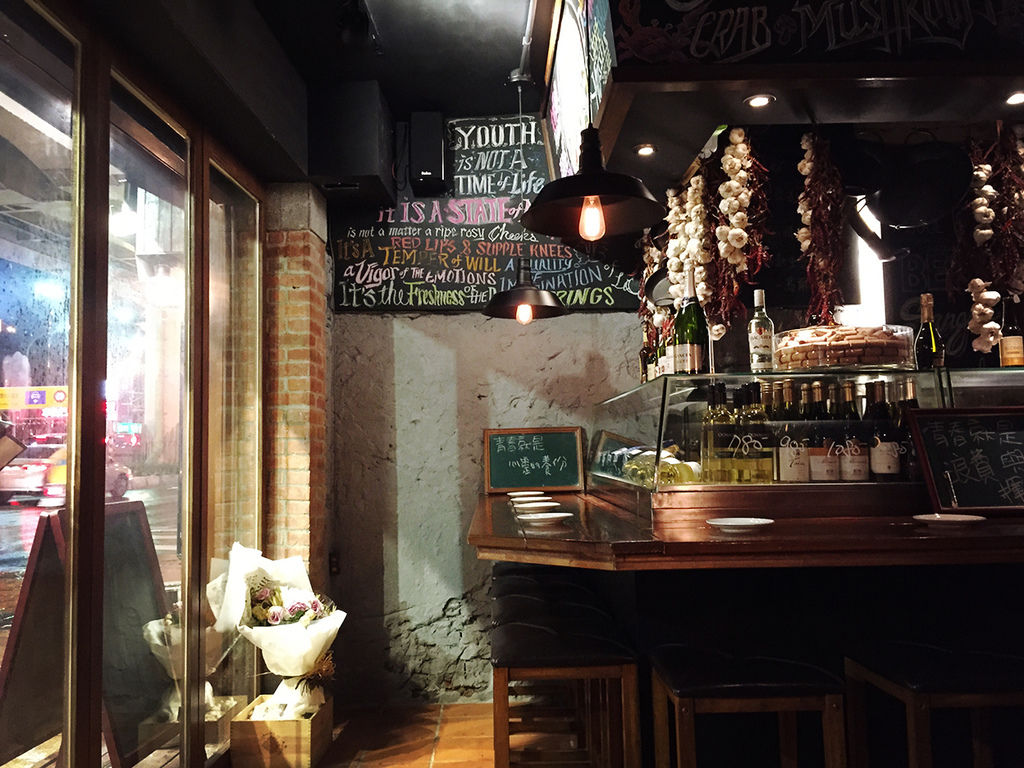 有吧台也有一般高腳椅的座位,櫃檯裡擺滿了整面牆的酒,很適合下班後的晚餐和小酌一番。