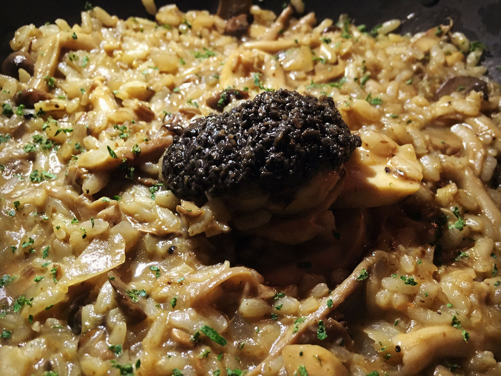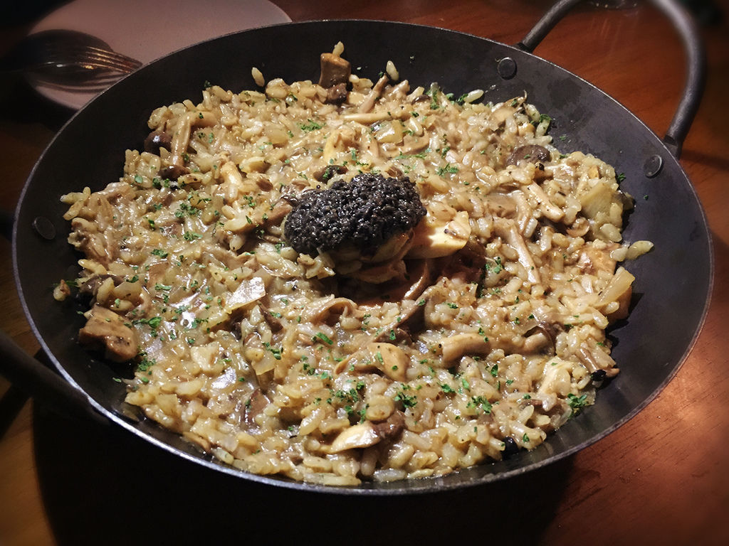 松露牛肝菌野菇燉飯2人份560元,有2人份和4人份的,都是用這樣一鍋上桌的,大家一起分食蠻有氣氛的。