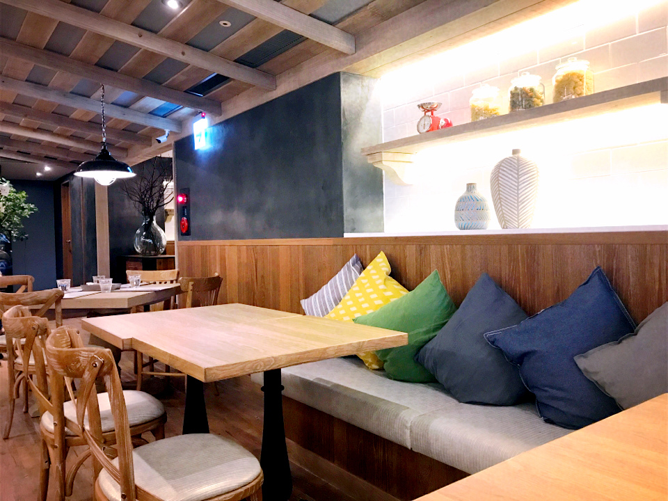 店裡的裝潢也蠻漂亮的,窗明几淨以木質調的設計,沙發上擺放許多抱枕,看了就很舒服。下午時段人潮真的比中午少多了,用餐起來也很舒適,蠻喜歡這裡的環境的。