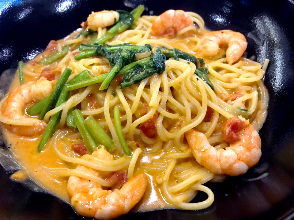 鮮蝦菠菜義大利麵260元,看起來就很漂亮,料也給得蠻多的,好幾尾蝦很明顯的讓人蠢蠢欲動啊!這是白醬與紅醬綜合的醬汁,吃起來不會太奶太膩,也不會過酸,這醬汁調得真的蠻不錯的,濃稠度也剛好,果然這麵條蠻夠水準的,軟硬適中,吃起來真的有Q彈的感覺。兩個人都一致覺得這份義大利麵很好吃,推薦喔~