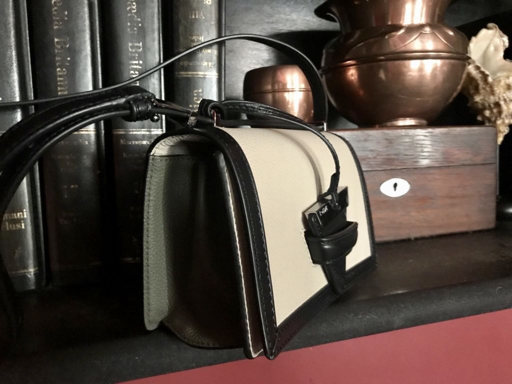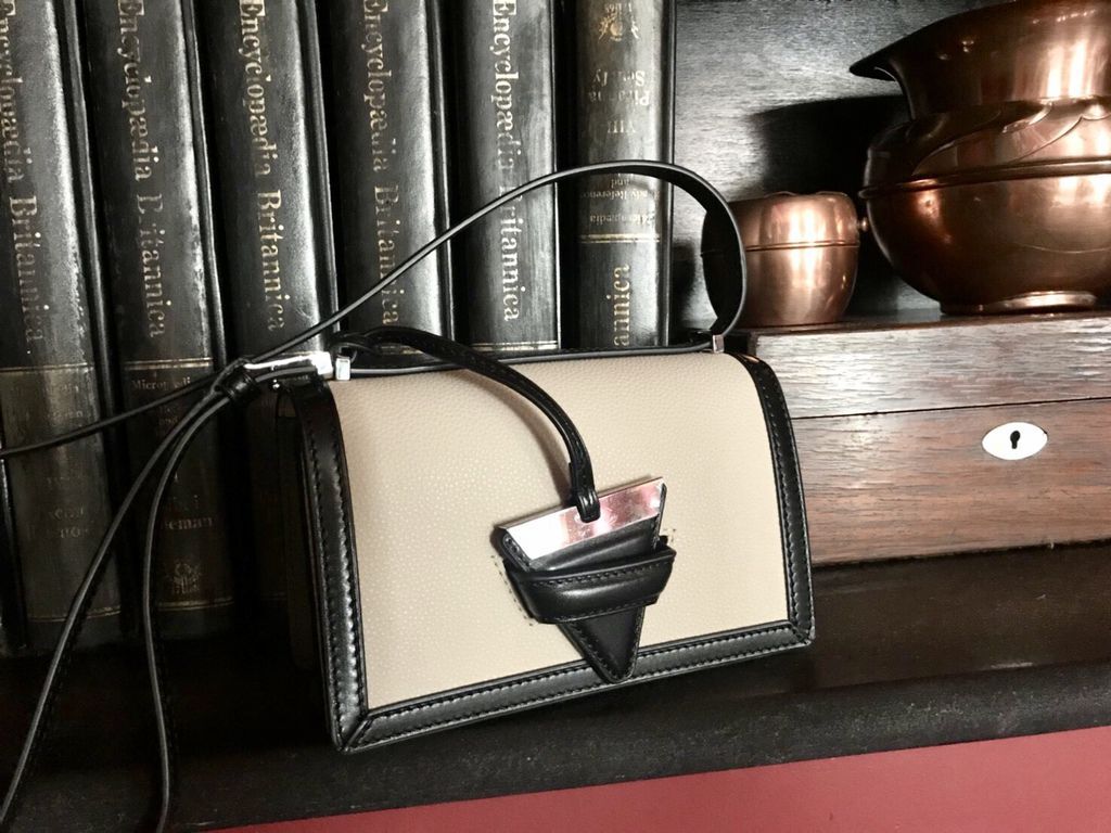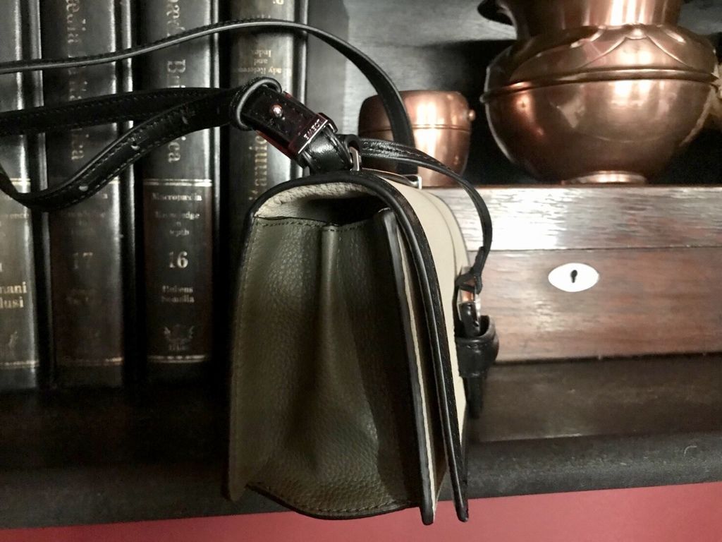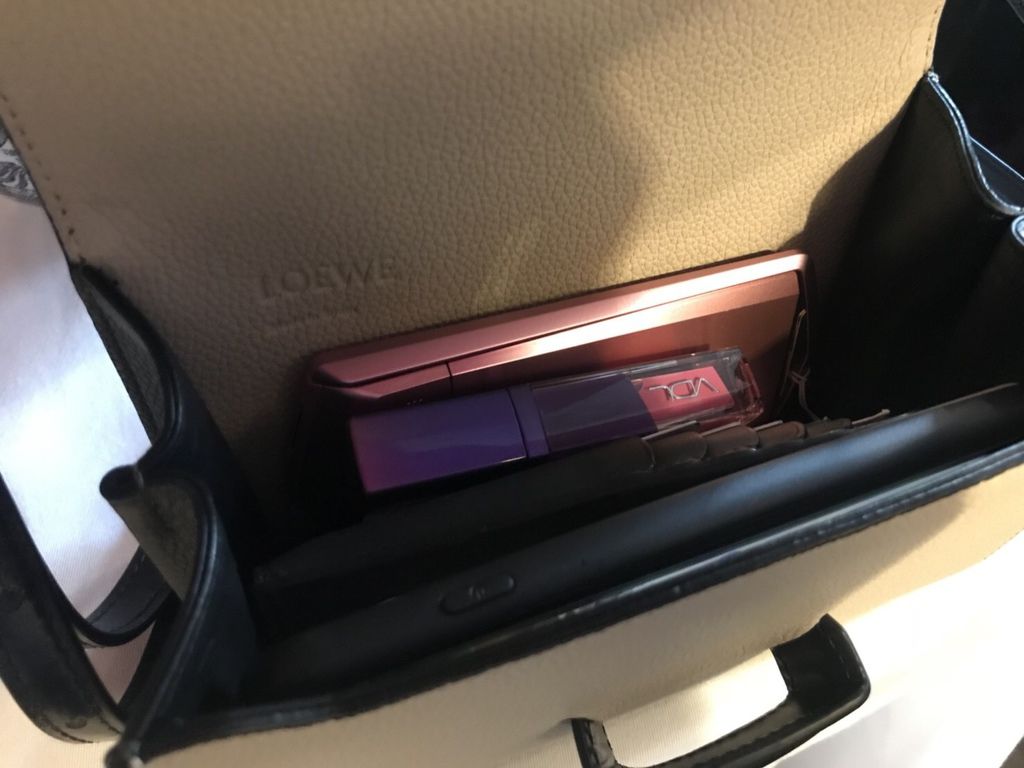 難得的選了米色與黑色的搭配,而且是米色的部分比較多,看起來亮眼許多,可能也因為黑色的包包太多了,想說這個配色低調又很優雅的感覺,不管是夏天還是冬天都很好搭配。之前就聽說過Loewe的包包皮革質感很好,做工也很厲害,果然是有口碑,看到實品真的是非常有質感,簡簡單單的設計,前面用一個三角形的牌子取代扣子,多了點造型蠻可愛的。通常用小包時,就不會用長夾,以小卡夾有零錢袋的或是小皮夾來取代,像這個包放了小皮夾、手機、自拍神器、唇蜜、鑰匙都還綽綽有餘,也不會覺得很擠或是東西難找,蠻喜歡這樣的空間。