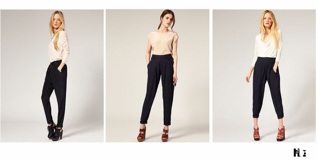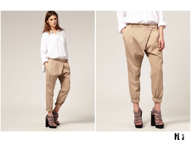 哈倫褲在春天仍然很實穿喔!只是在剪裁上沒有去年的那麼低檔,褲頭多了些打摺增加立體感!